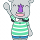 サイのすけは、この世の未来について常に考えているサイです。多彩な才能をもっていますが、おしりのぜんまいを巻いていないと気分が上がらなくなり、やる気がなくなることもあります。フラスコの中には希望が詰まっていて、ヘッドフォンは未来に役立ちそうな知識を流しているんです。