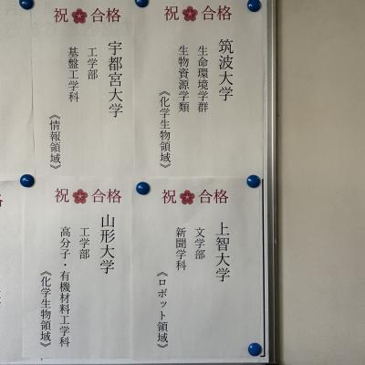 国立大学合格情報です。