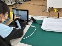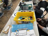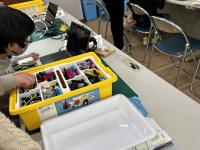 情報コースは、「物理シミュレーション」と「LEGOプログラミング」。プログラミングに興味のある小・中学生が、集中して短時間で作成しました。家でもトライできる、お土産付きでした。