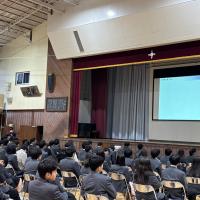 第一印象の大切さから、制服のベストバランスの着方、スラックスの適切な長さ、スカートの美しく見える長さ、化粧は必要ないなど、近い未来の大学入試を意識した内容も含めながら、具体的なお話をしていただきました。