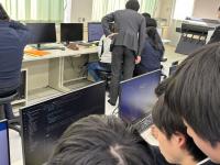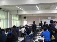 さらに、ロボット領域や情報領域で、具体的に生徒が行っている実習の一部をご覧いただき、社会課題に端を発した研究につながることを知っていただきました。