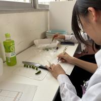 シシトウを刻んで実食し、味の確認をしている生徒たちがいました。