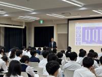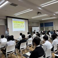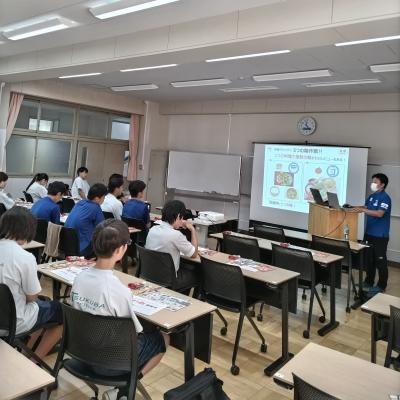 9月29日(月)味の素株式会社の方を講師にお招きし、硬式野球部、男子バレーボール部、サッカー部、ハンドボール部、剣道部部員の生徒が参加して、『「勝ち飯」食とアミノ酸コンディショニング講習会』を実施しました。講習では、「食事・睡眠・休養」のアスリートとして最低限必要な要素である食事、補食の大切さを再認識する機会となりました。
